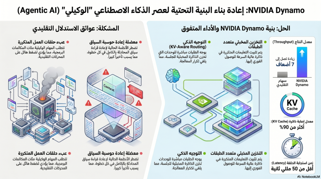 NVIDIA Dynamo ليست مجرد تحديث آخر لمحرك الاستدلال؛ إنها البنية التحتية الأساسية المطلوبة لثورة الذكاء الاصطناعي الوكيل. من خلال حل مشكلة تجزئة ذاكرة التخزين المؤقت وتقديم الجدولة المدركة للوكيل، قامت NVIDIA بإزالة الاحتكاك المادي الذي كان يعيق الأطر متعددة الوكلاء في الوقت الفعلي.