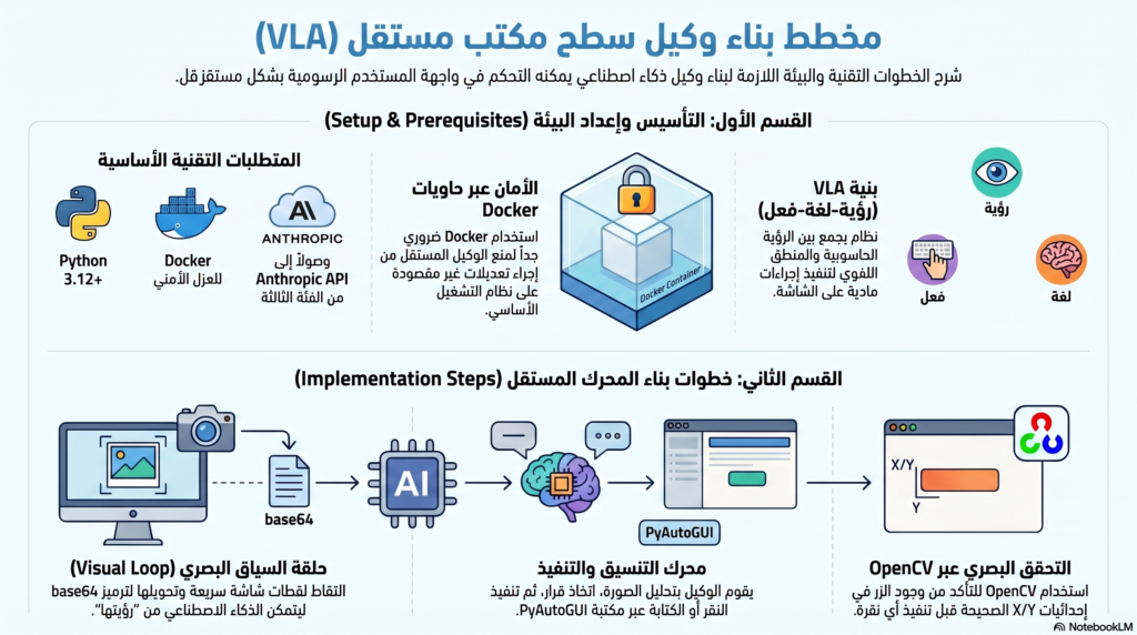 تتفاعل LLMs القياسية عبر تدفقات النصوص. في هذا الدرس التقني لعام ٢٠٢٦، نقوم ببناء وكيل مرئي مستقل. باستخدام بنية واجهة برمجة التطبيقات “استخدام الكمبيوتر” المُحدثة لـ Claude 4.5 من Anthropic، سنقوم بإنشاء حلقة Python تأخذ لقطة شاشة، وترسلها إلى الذكاء الاصطناعي، وتفسر الإجراءات المقصودة من الذكاء الاصطناعي (مثل تحريك الماوس إلى إحداثيات X/Y محددة أو كتابة نص)، وتنفذها باستخدام PyAutoGUI.